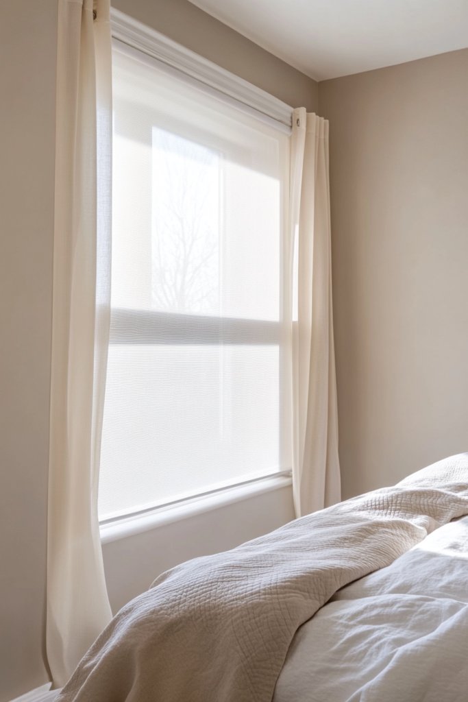 A minimalist window treatment approach instantly boosts your room’s sense of openness and tranquility. It’s a small change with a big impact—brightening your space and reducing visual clutter. You’ll love how fresh and modern your bedroom feels, all while enjoying more natural light every day.