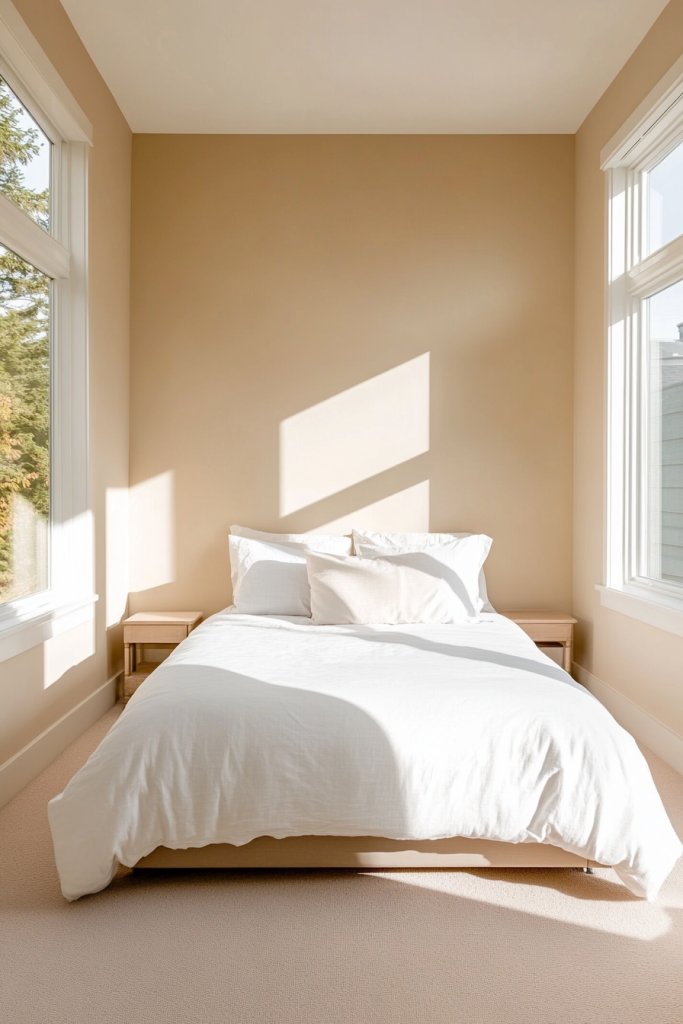 Picture walls painted in a soft, warm beige that reflects natural light from your window. The room feels airy and calm, with a subtle glow that makes everything look fresh. Complement this with white trim and ceiling, which enhances the sense of height. The overall palette creates a serene sanctuary that’s perfect for relaxing or winding down.