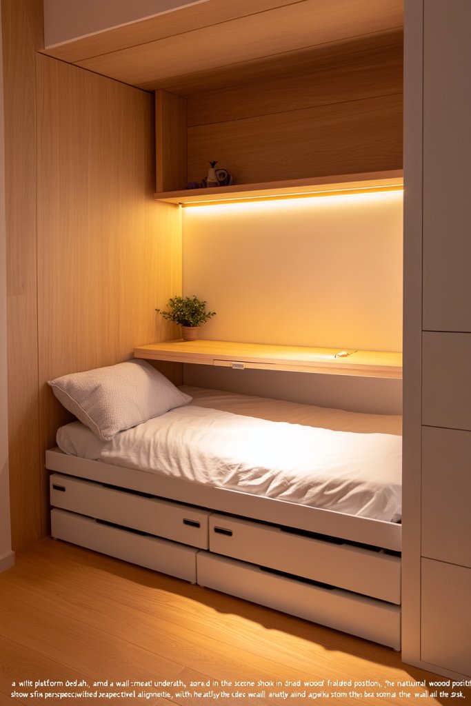 Picture a bed with built-in drawers underneath, perfect for storing clothes or linens. Or a fold-down desk that tucks away when not in use, creating a sleek workspace. These pieces use clean lines and neutral finishes that blend seamlessly with your decor. The room feels uncluttered yet fully functional, with furniture that adapts to your needs.