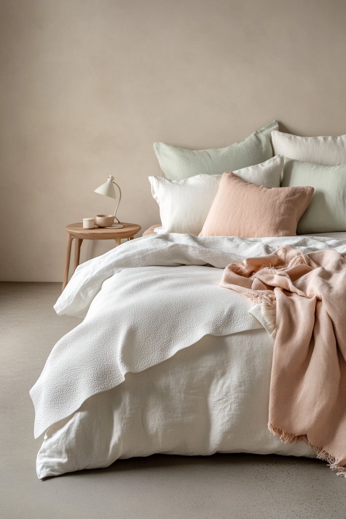 Select bedding in pale hues that complement your walls and furniture. Wash and iron linens for a crisp, clean look. Use decorative pillows sparingly—stick to solids or subtle patterns to avoid visual clutter. Incorporate a few soft textiles like a throw blanket or plush rug in matching tones. Keep your bed made daily to maintain that fresh, airy vibe.