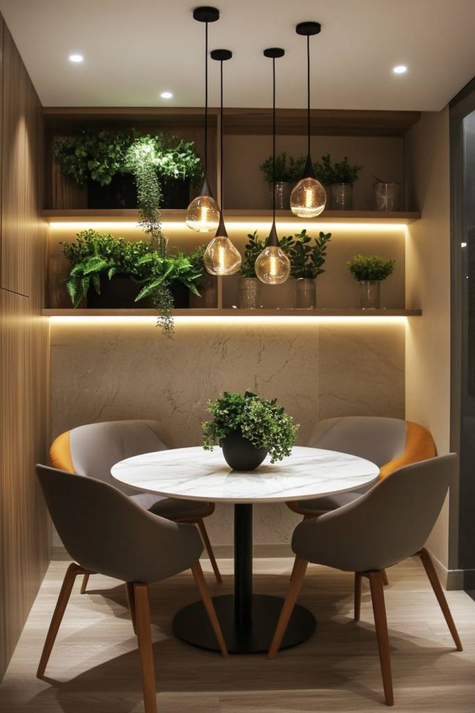 When you’re looking to breathe life into your small dining room, incorporating plants can make all the difference. Imagine vibrant greenery adding a pop of color and a sense of tranquility to your space. Choose low-maintenance options like succulents, ferns, or peace lilies, which thrive even in limited light. Place a small potted plant on your dining table or a shelf to create a focal point without overwhelming the room.