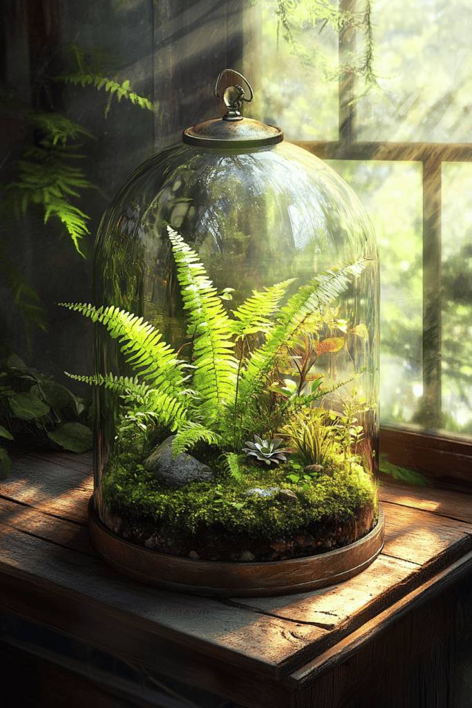 Layer the bottom with small rocks for drainage, followed by activated charcoal to keep the soil fresh. Next, add a layer of potting soil, and then select your plants. Opt for smaller varieties like moss, succulents, or ferns, which thrive in confined spaces.
