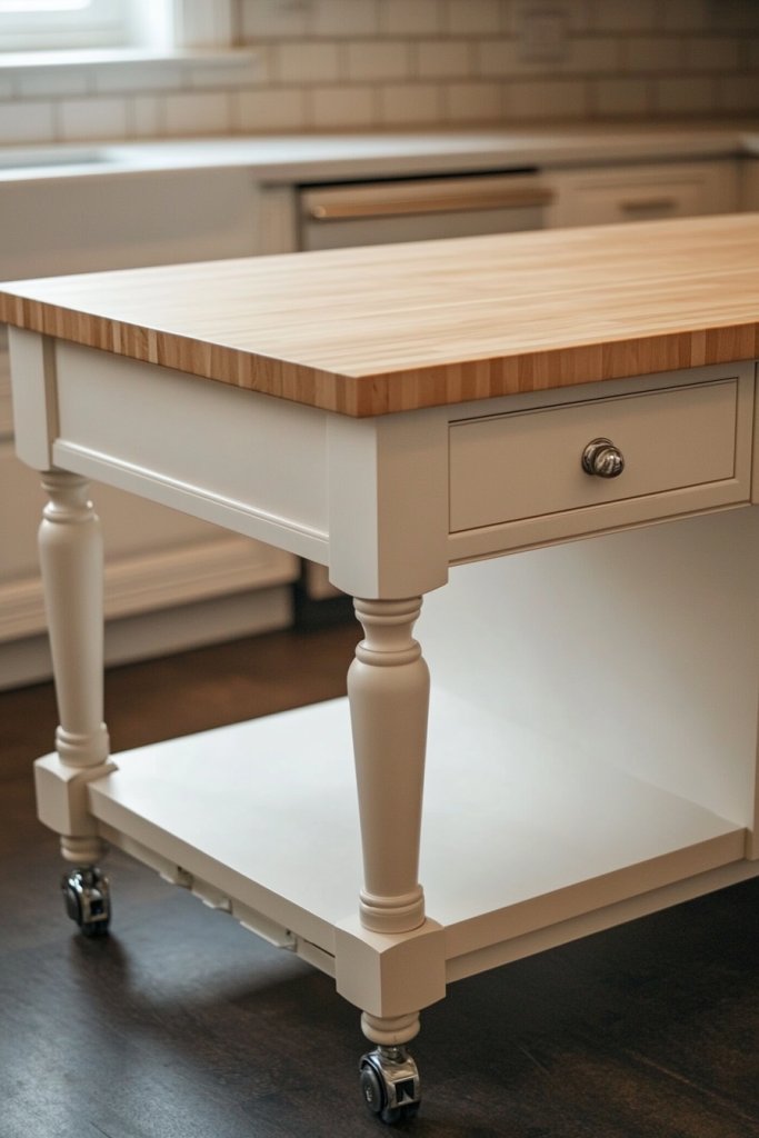 Short on space but need extra dining or prep area? A foldable table-style island offers versatility without permanent clutter. It’s perfect for small kitchens that host friends or need multiple functions in one spot. Who says flexible design can’t be stylish?