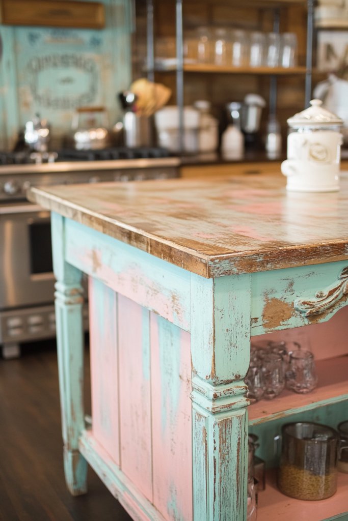 Craving a kitchen with personality and charm? A vintage-painted island can transform your space into a cozy, eclectic haven. It adds character and a sense of history, making every meal feel special. Who says small kitchens can’t have big personality?