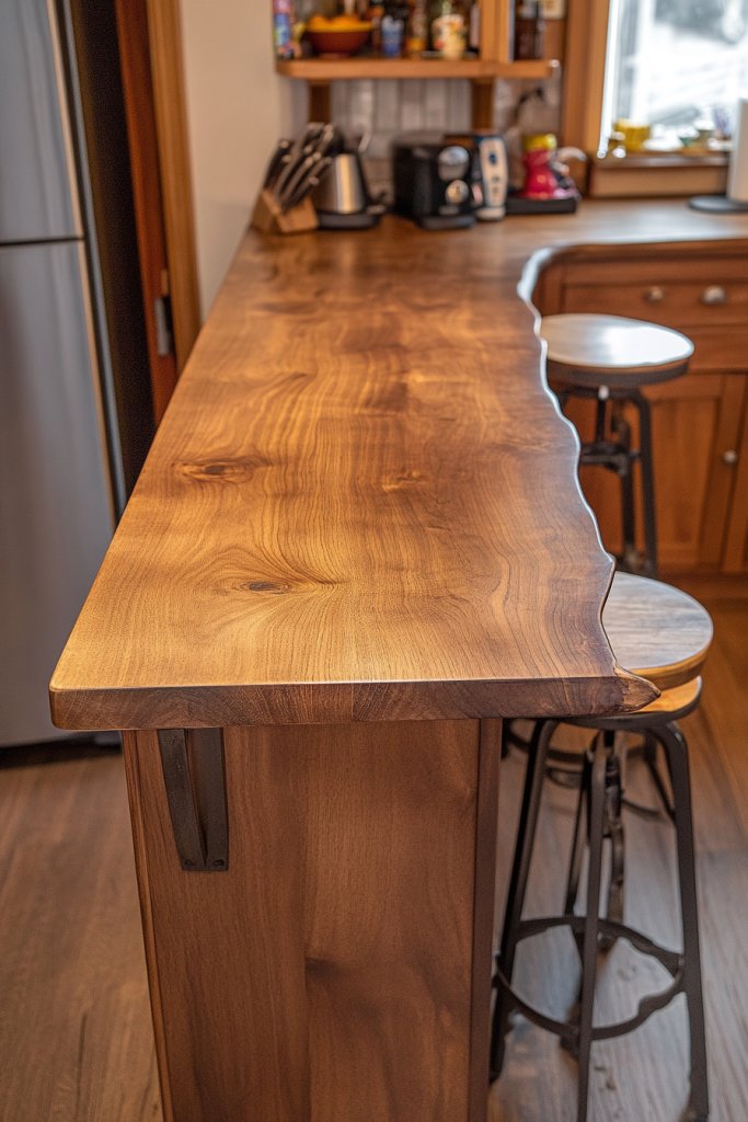 Adjust the heights for comfort—standard counter height for prep, and 42 inches for seating. Keep the surfaces durable and easy to clean. You can add open shelves underneath the lower level for extra storage. The upper bar can be a simple ledge or a more elaborate overhang with decorative trim.