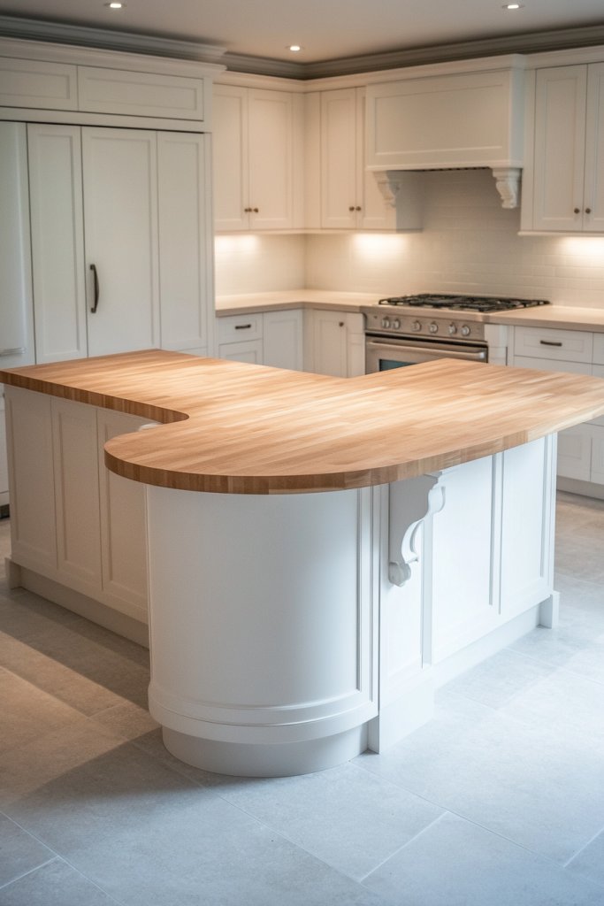 Picture a sleek island with a raised bar section for seating and a lower workspace for prep. Use contrasting materials—like a marble top with a wooden raised section—to create dimension. Soft ambient lighting highlights the different levels, drawing the eye and making the space feel larger. It’s like a mini architectural feature built into your kitchen.