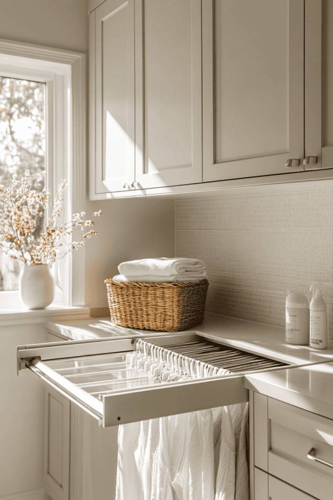 Maximizing vertical space isn’t just about shelving; it also opens up opportunities for practical solutions like pull-out drying racks. These clever installations help you make the most of your laundry room without sacrificing valuable floor space. Imagine a sleek rack that slides out from a cabinet or wall when you need it, then tucks away when you don’t.