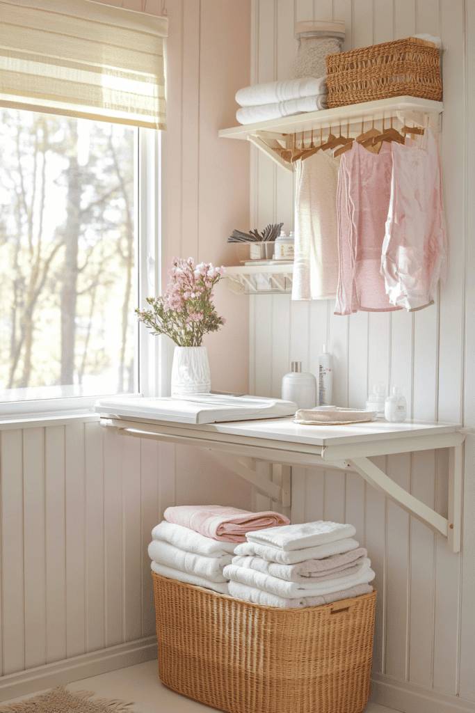 To further maximize your small laundry room’s functionality, consider incorporating a folding drying rack. This versatile addition not only saves space but also provides a practical solution for air-drying delicate garments and reducing energy costs. When folded, it can easily tuck away against a wall or inside a closet, keeping your space uncluttered.