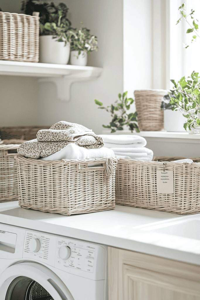 Baskets can be a game-changer for keeping your laundry room organized and clutter-free. By choosing a variety of sizes and styles, you can create a visually appealing and functional storage solution. Start by designating specific baskets for different purposes—one for delicates, another for whites, and perhaps a larger one for towels. This not only streamlines your laundry process but also makes sorting a breeze.