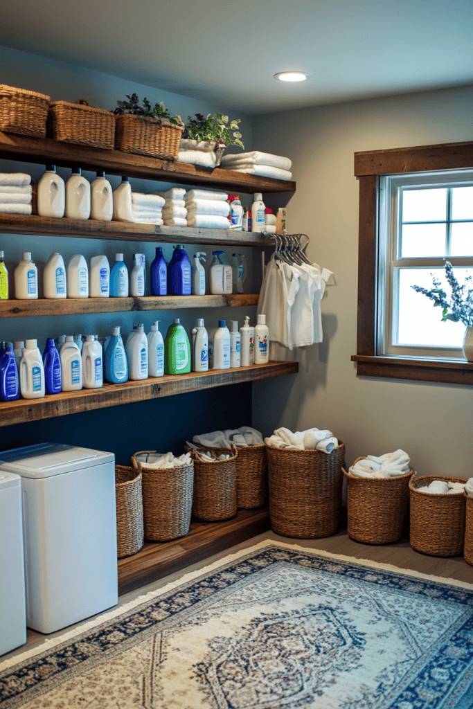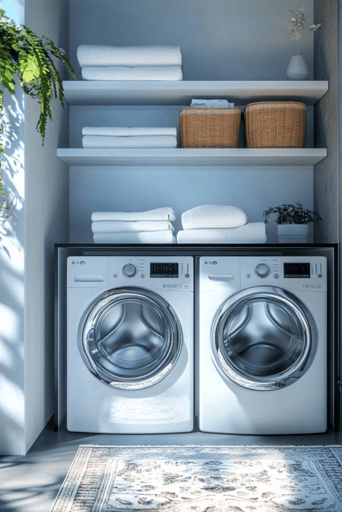 If your laundry room has a blank wall, a tall shelving unit can be a game changer. It can hold more items and make your space feel less cluttered. By creatively using vertical space, you’ll find that even the smallest laundry rooms can feel more functional and efficient.