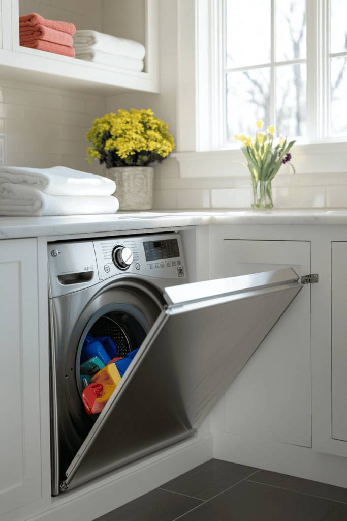 Choose materials that are durable and easy to clean, such as metal or smooth plastic, to prevent snags or blockages. Additionally, make sure the chute leads directly to your laundry room, making it easier to sort and start your laundry. With this simple addition, you’ll streamline your laundry process and reclaim valuable space in your small laundry room.