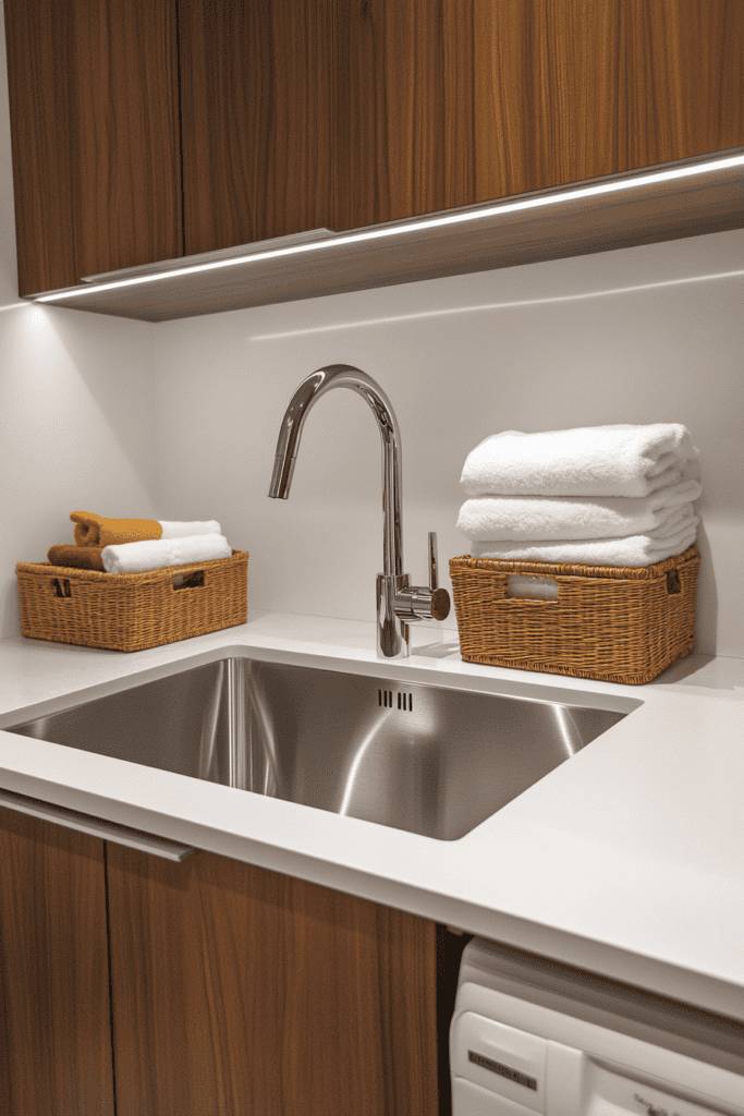 Opt for a sink with built-in storage options, such as a shelf underneath, where you can stash detergents or cleaning supplies. Materials like stainless steel or ceramic not only enhance durability but also add a stylish touch.