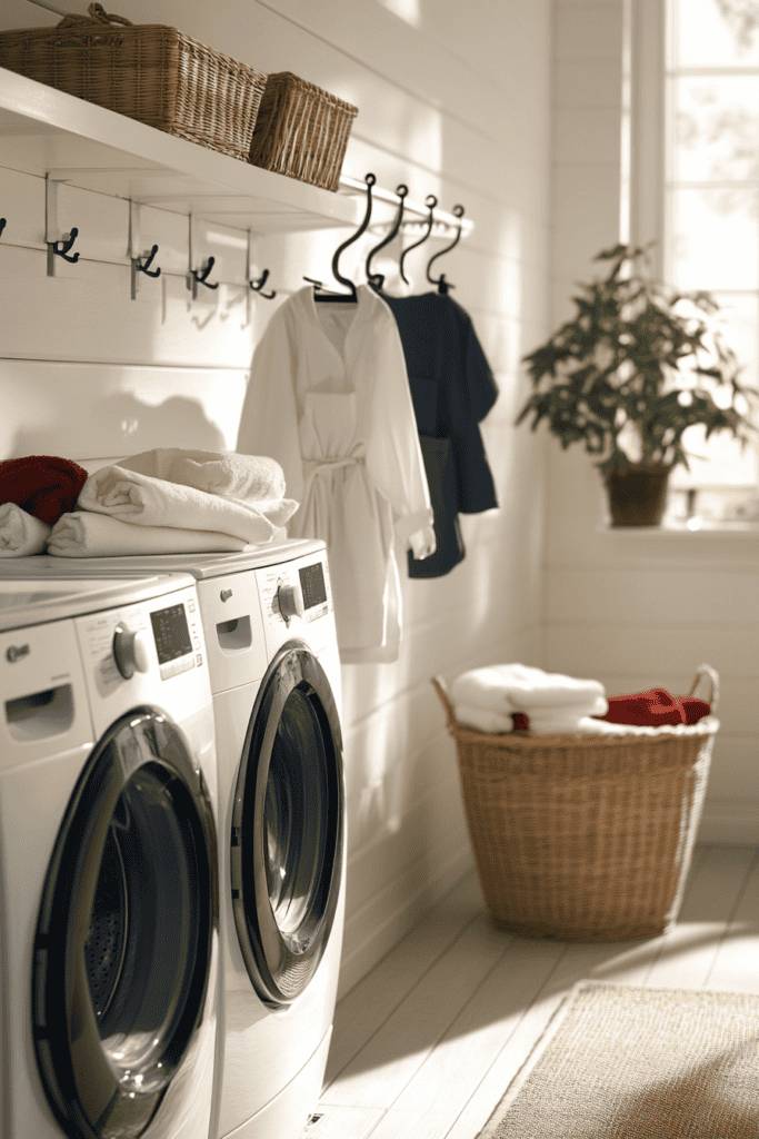Adding hooks for hanging items can instantly elevate the functionality of your small laundry room. These simple yet effective additions help you maximize vertical space, making everything more accessible. Consider placing hooks near your utility sink or washer, where you can hang up items like cleaning cloths, laundry bags, or even dry delicates.