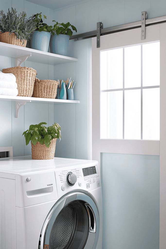 A fresh coat of paint can work wonders in a small laundry room, especially when you choose light colors. Soft whites, pale blues, or gentle grays reflect light, making the space feel airy and open. These hues can create an illusion of depth, drawing the eye upward and making the ceiling seem higher.
