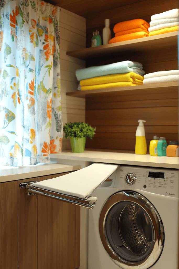 Incorporating a folding table into your laundry room can considerably enhance its functionality, especially in tight spaces. This versatile piece can serve multiple purposes—think of it as a workspace for folding clothes, sorting laundry, or even storing detergents and supplies. When you’re not using it, simply fold it down to reclaim valuable floor space.