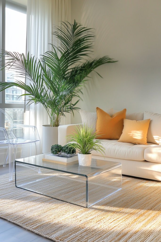 This combination not only looks chic but also allows your decor to shine through, keeping the focus on your beautiful elements instead of bulky furniture. Additionally, transparent pieces can easily blend with various styles, from modern to eclectic, enhancing your room’s character without overwhelming it.