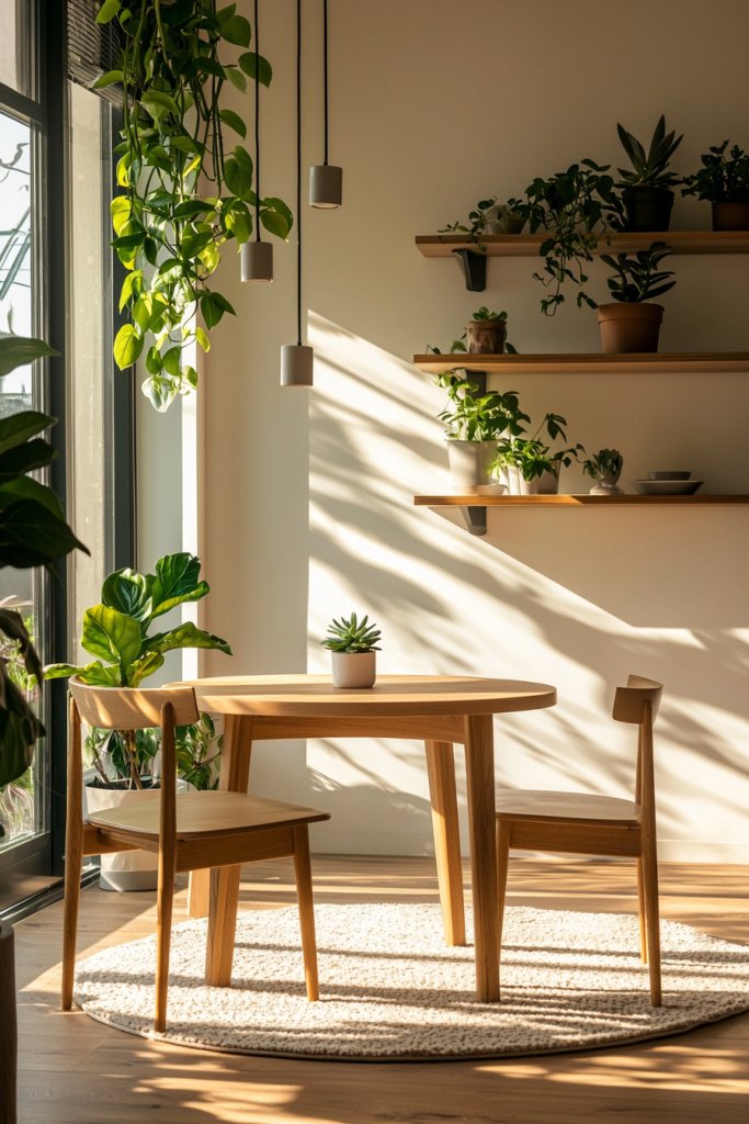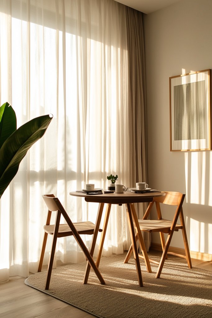 Picture a sleek, minimalist table that can expand for dinner guests or fold away when not in use. Pair it with chic, stackable chairs that complement your decor while providing extra seating when needed.