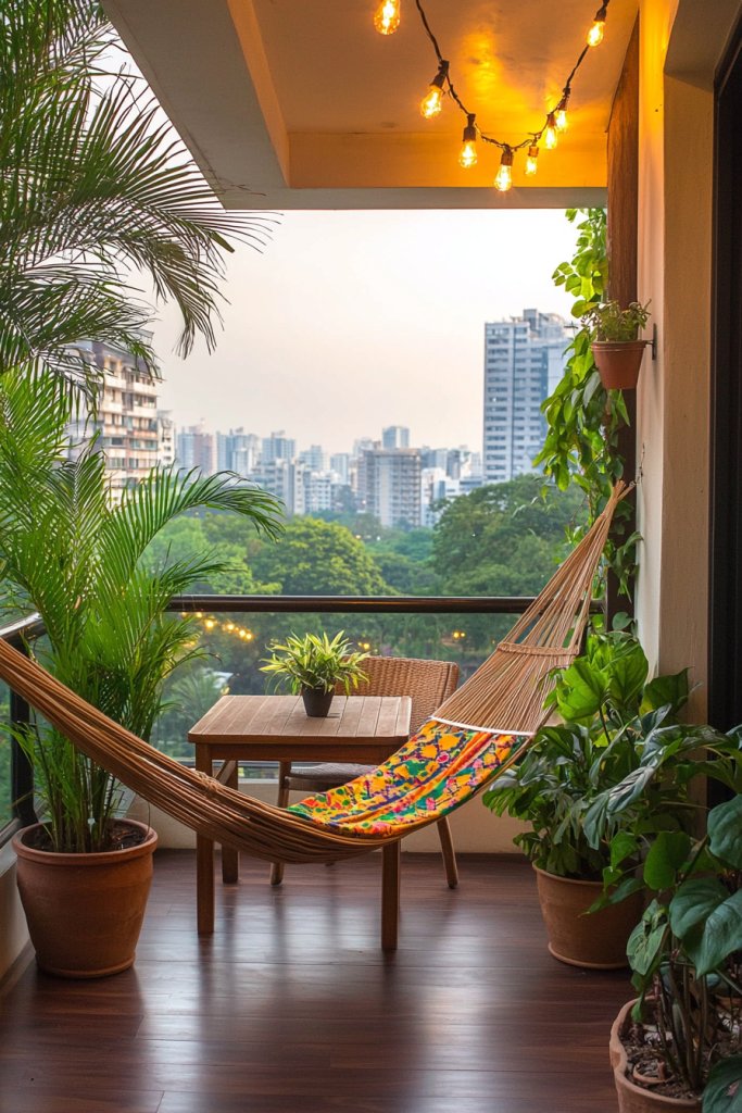 Don’t forget a small table for morning coffee or evening cocktails, turning your balcony into a mini retreat. With these thoughtful touches, you’ll have a serene space that feels like a refreshing change, right at home.
