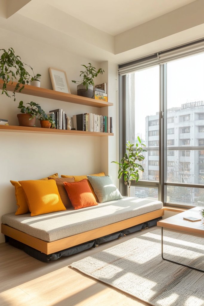 For a cozy reading nook, add a corner chair paired with a small side table and a soft throw. This setup invites relaxation while maximizing space.