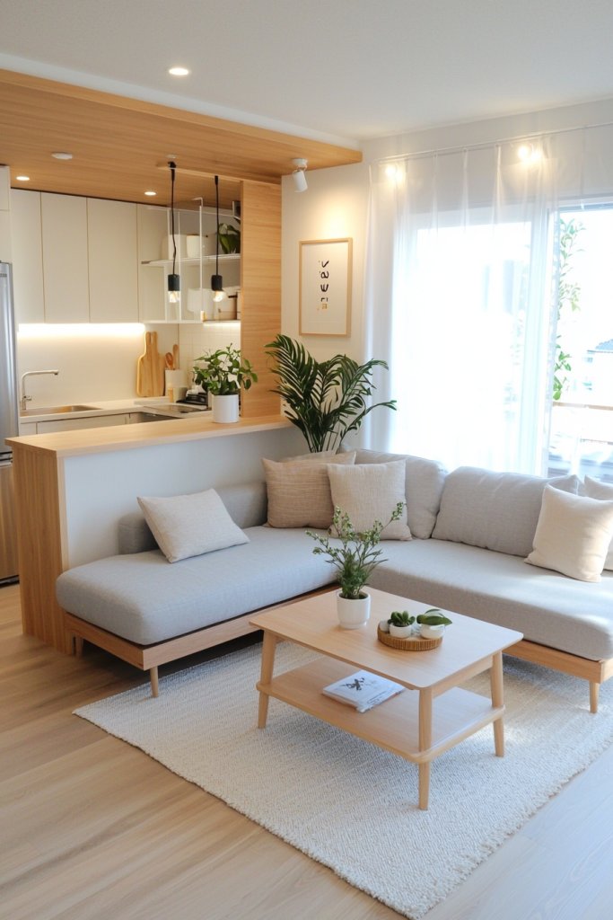 Transform your small studio apartment into a smart living space with multifunctional furniture like sleek sofas that double as beds and expandable dining tables. Maximize vertical space with tall shelving and floating shelves to keep things organized.