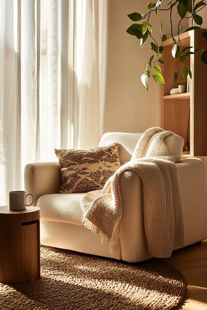 A soft, oversized chair or a chic floor cushion can create an inviting spot for reading or sipping coffee. Layer in plush textiles—think a chunky knit throw and decorative pillows—bringing texture and comfort.