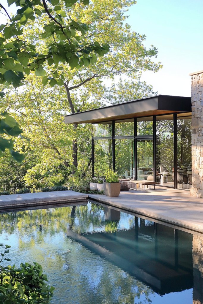 Consider a sleek, rectangular design that echoes modern aesthetics, allowing you to swim laps while enjoying the tranquility of your surroundings. Incorporate a raised deck or an infinity edge to create the illusion of more space, blurring the lines between water and landscape.