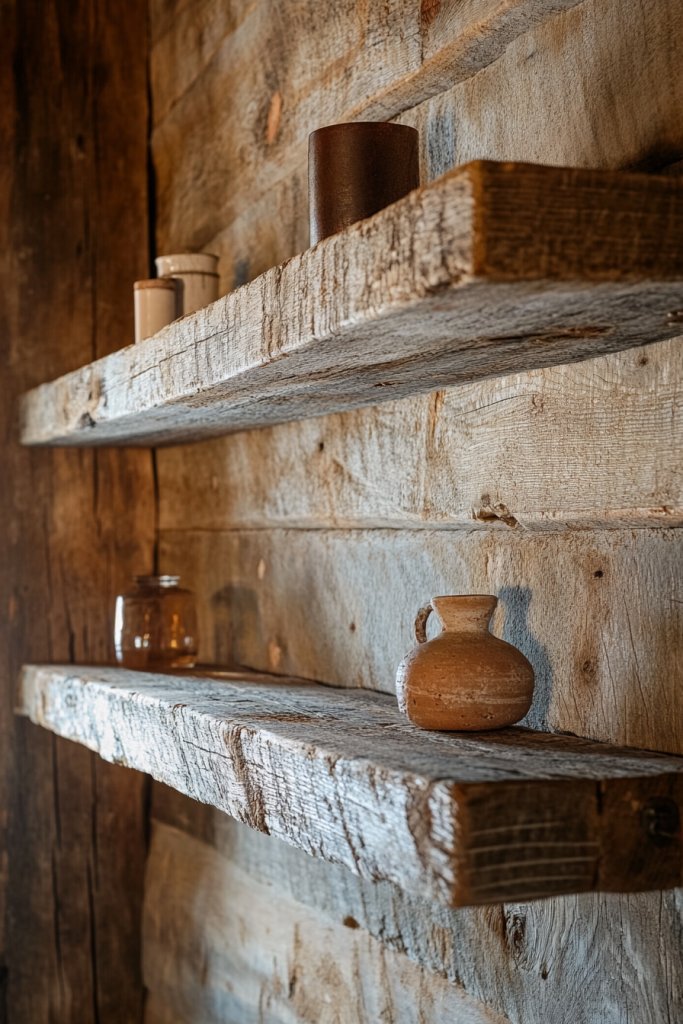 10. Use Distressed Wood Beams or Shelves for a Rustic Look
