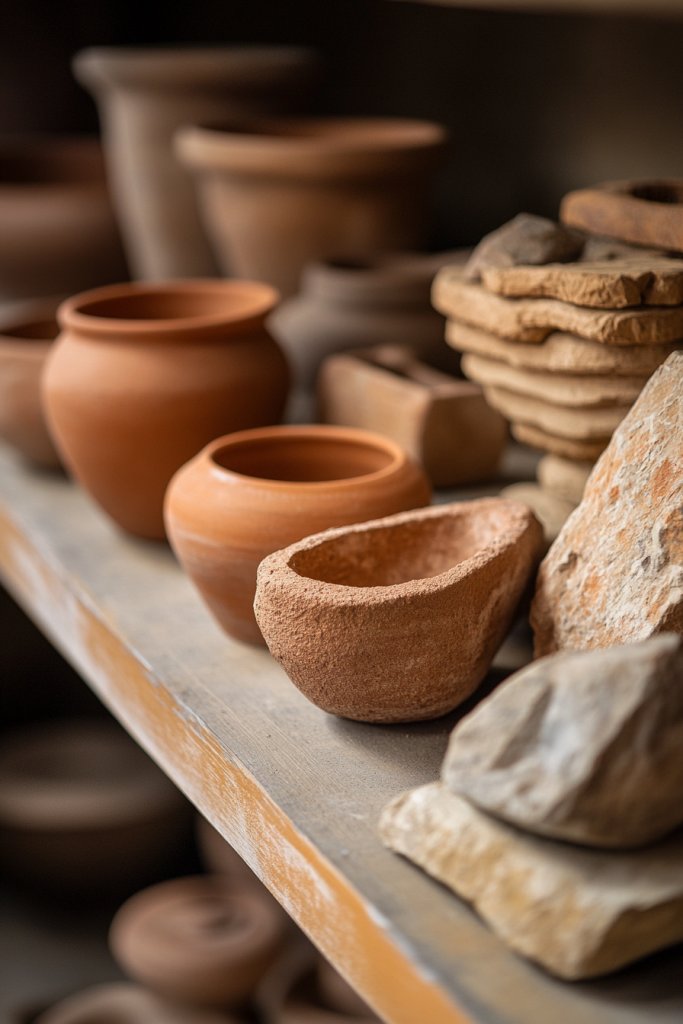 15. Use Earth-Toned Clay or Stone Decorative Objects