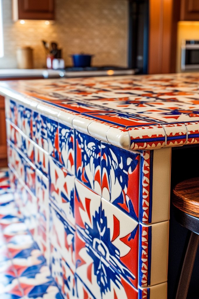 Choose tiles with bold geometric patterns or subtle regional motifs, depending on your style preference. Use them as a full backsplash, border accent, or floor covering for a dramatic effect. Mix different patterns or colors for a more eclectic look, or keep it uniform for a cohesive feel. Seasonal updates could include swapping out lighter or darker tiles or adding regional textiles nearby. Incorporate natural materials like wood or wrought iron to enhance the regional theme.