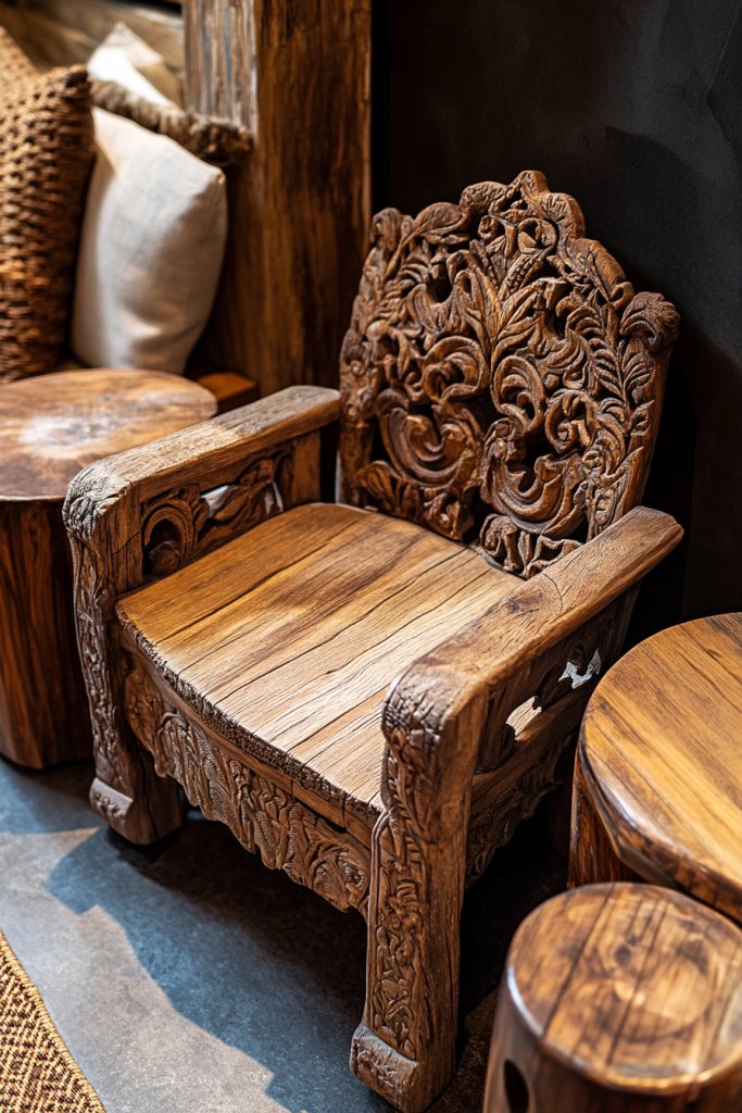 4. Use Carved Wooden Furniture Pieces for Natural Texture