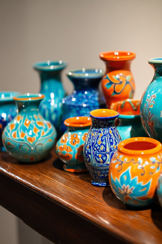 7. Display Colorful Ceramic Vases and Pottery