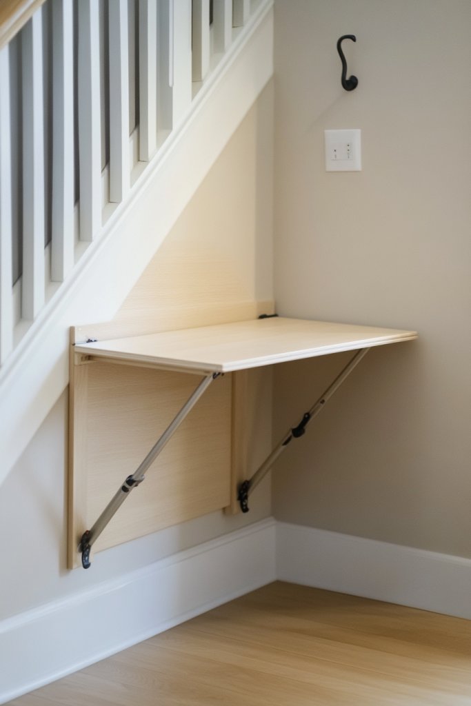 Choose a fold-down desk in wood, metal, or a combo to suit your style—minimalist, industrial, or Scandinavian. For small spaces, opt for a wall-mounted unit that folds away when not in use. Add a small corkboard or magnetic strip above for notes and reminders. Seasonal decor or small plants (not restricted) can add a lively touch.