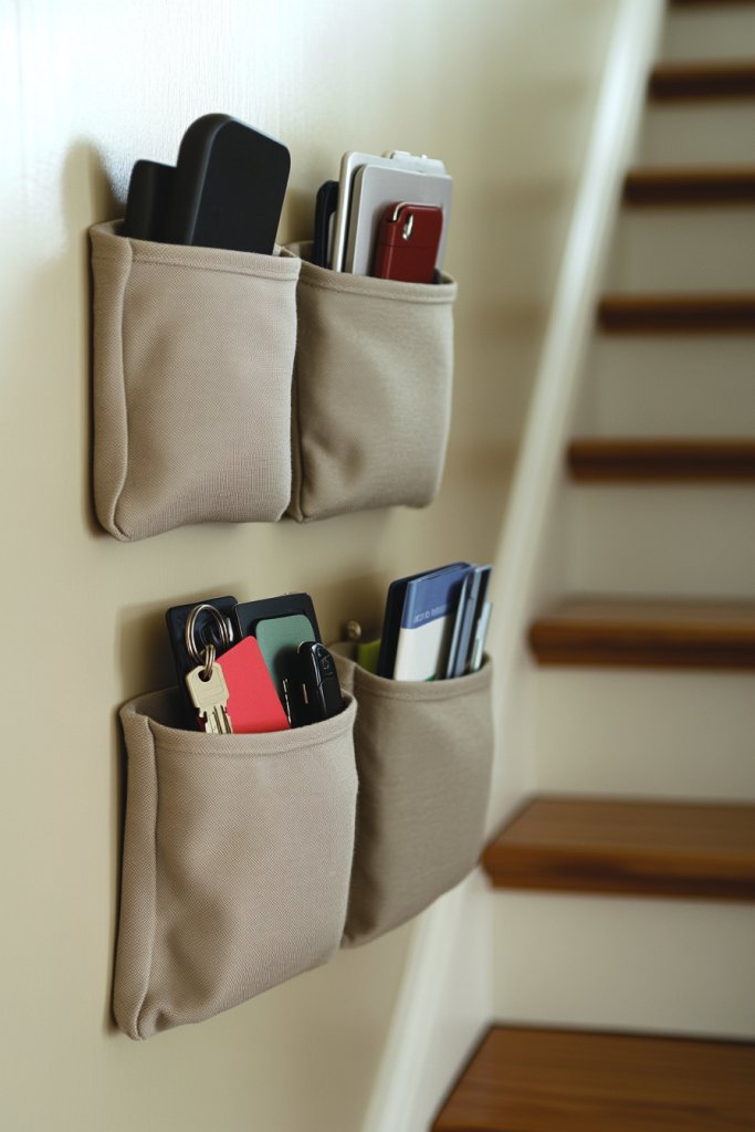 Select pockets made of canvas, leather, or mesh, depending on your decor. Use different colors or labels for quick identification. Mount the organizer near the door or stairs, adjusting pocket size for your needs—small for keys, larger for chargers or mail. For a more decorative touch, add a fabric trim or embroidery.
