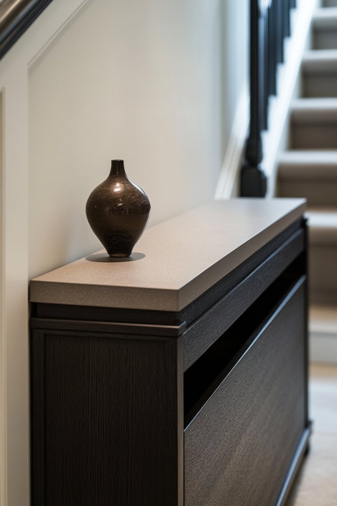 Struggling with visible clutter and limited storage options? A sleek console table with hidden compartments offers a stylish solution. It provides a surface for keys and decor while concealing daily essentials out of sight. This dual purpose helps keep your landing tidy and enhances your home’s aesthetics.