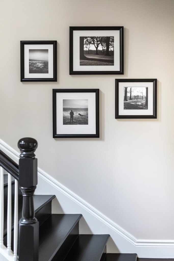 Looking to turn an ordinary staircase landing into a personal gallery? A curated collection of framed photos or prints can make the space uniquely yours. It adds character, tells your story, and dramatically boosts your decor without overwhelming the area. Plus, it’s a simple way to showcase your favorite memories or artistic finds.