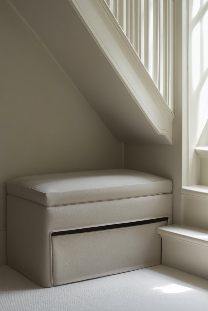 A dedicated shoe area reduces clutter and prevents accidents, making your staircase landing safer and more appealing. It encourages organization and responsibility, especially in households with kids. Once in place, this solution offers a quick win for a more orderly home. Ready to step up your shoe storage game?