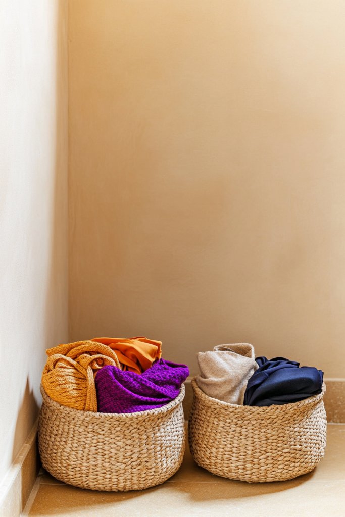 Choose baskets that complement your decor—think boho chic with woven textures or sleek modern with metallic finishes. Use fabric-lined bins for a softer look or waterproof containers for outdoor or rainy-day items. Stacking baskets or nesting smaller ones inside larger ones maximizes space. Seasonal swaps can include cozy wool or faux fur-lined options for winter.