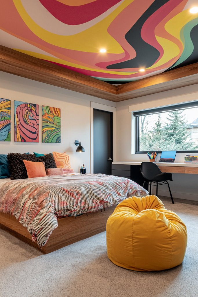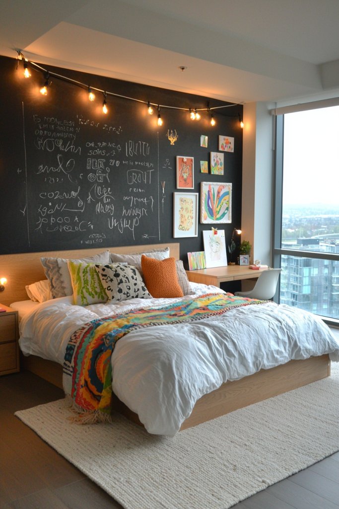 Artistic ceilings set the stage for creativity, but why stop there? Interactive chalkboard walls can transform your teen bedroom into a dynamic canvas. Imagine having an entire wall where you can jot down ideas, doodle, or even practice your art skills.
