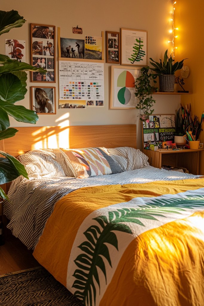 Let your imagination run wild with wall art and customizable elements, while indoor plants bring a touch of nature inside. Embrace your individuality and curate a room that’s not just a bedroom, but a true expression of you.
