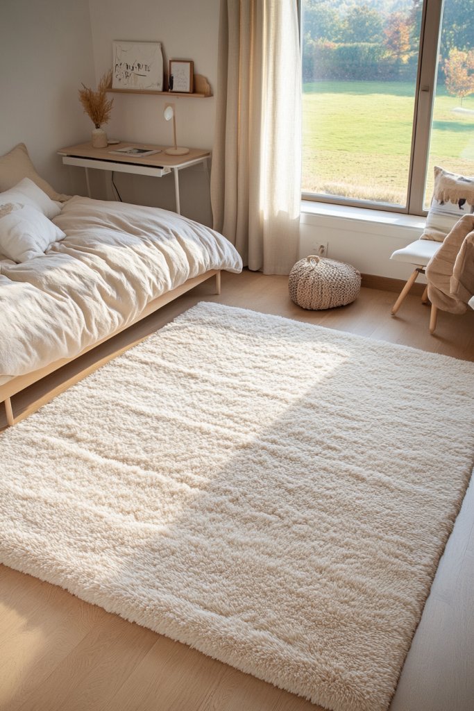 Choose from bold geometric patterns for a modern look or muted, neutral designs for a calming effect. Layer rugs for added texture or size variation, especially in larger rooms. Use textured or shaggy styles for extra coziness, or flatweave options for a sleek, minimal vibe. Match the rug with bedding or curtains to tie the room’s color scheme together. Seasonal swaps refresh the room’s look without much effort.