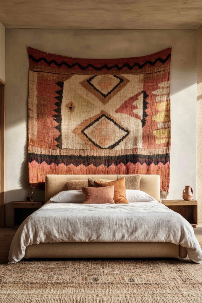 13. Creative Headboard Using DIY Materials or Tapestries