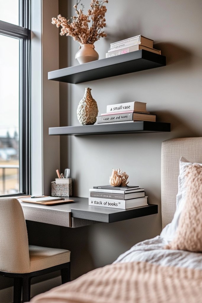 2. Floating Shelves for Decor and Organization
