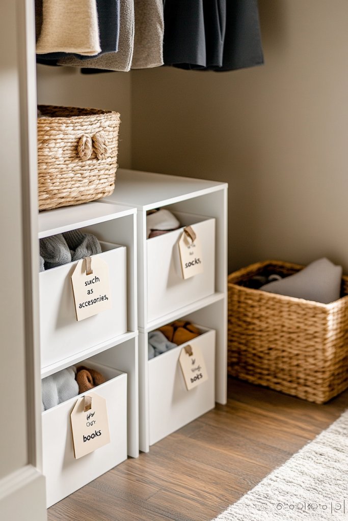 Choose durable, lightweight cubes made of plastic, fabric, or wood. Label each cube with a marker, label maker, or decorative tags. Arrange the cubes in a way that suits your space, attaching to walls with brackets or stacking on the floor. Use different sizes to accommodate various items—small for accessories, larger for clothing or books. Regularly update labels and contents to keep the system functional and fresh. These modular units are straightforward to set up and maintain.