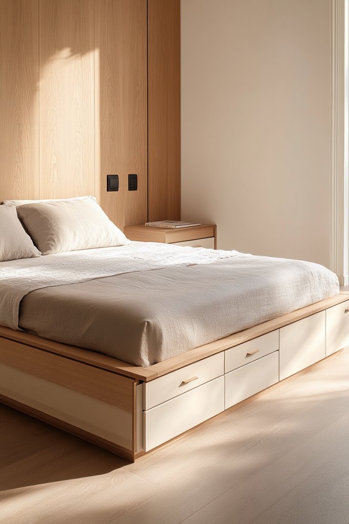 5. Minimalist Bed Frame with Built-in Drawers