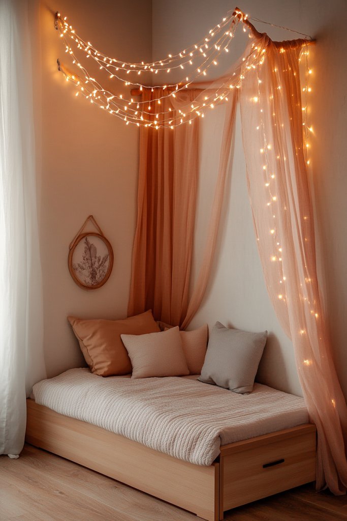 7. DIY String Light Canopy for a Cozy Atmosphere