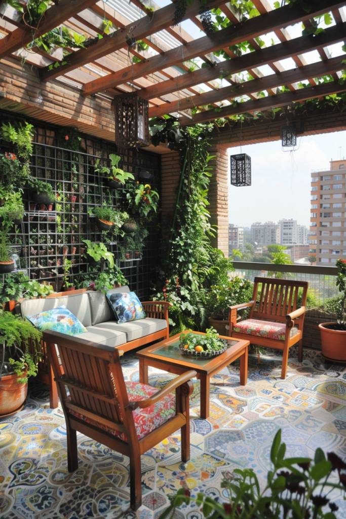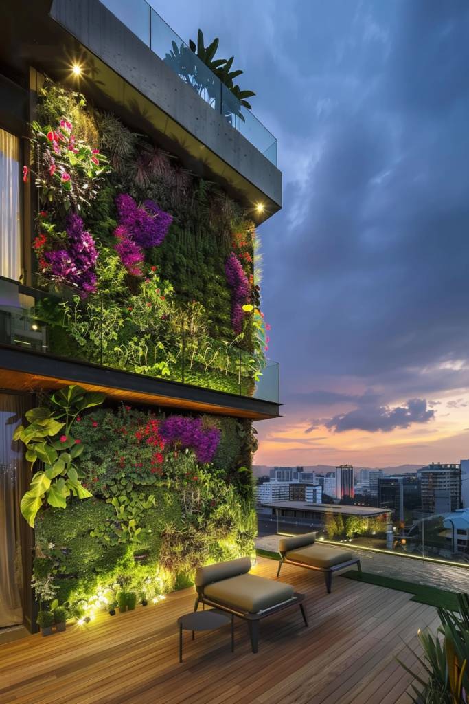 With strategic lighting, your vertical garden can come alive at night, creating a serene ambiance. This innovative approach not only beautifies your terrace but also improves air quality, offering a revitalizing retreat right at home.