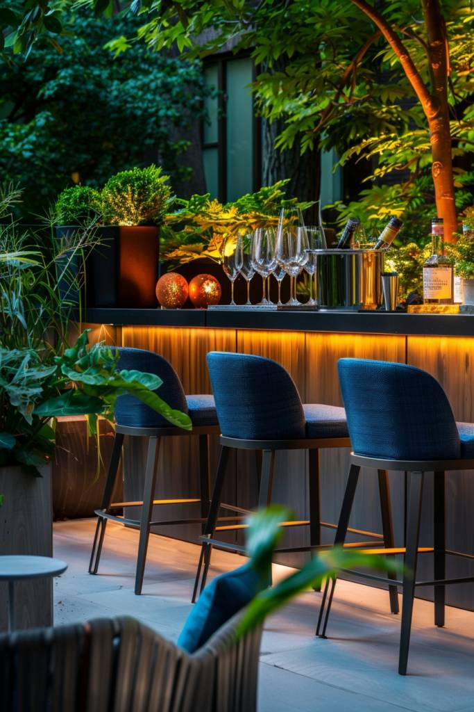 Incorporate low-energy LED lighting to create ambiance without the hefty electricity bill. Consider adding a small herb garden nearby; not only does it add greenery, but you can use fresh herbs in your cocktails.