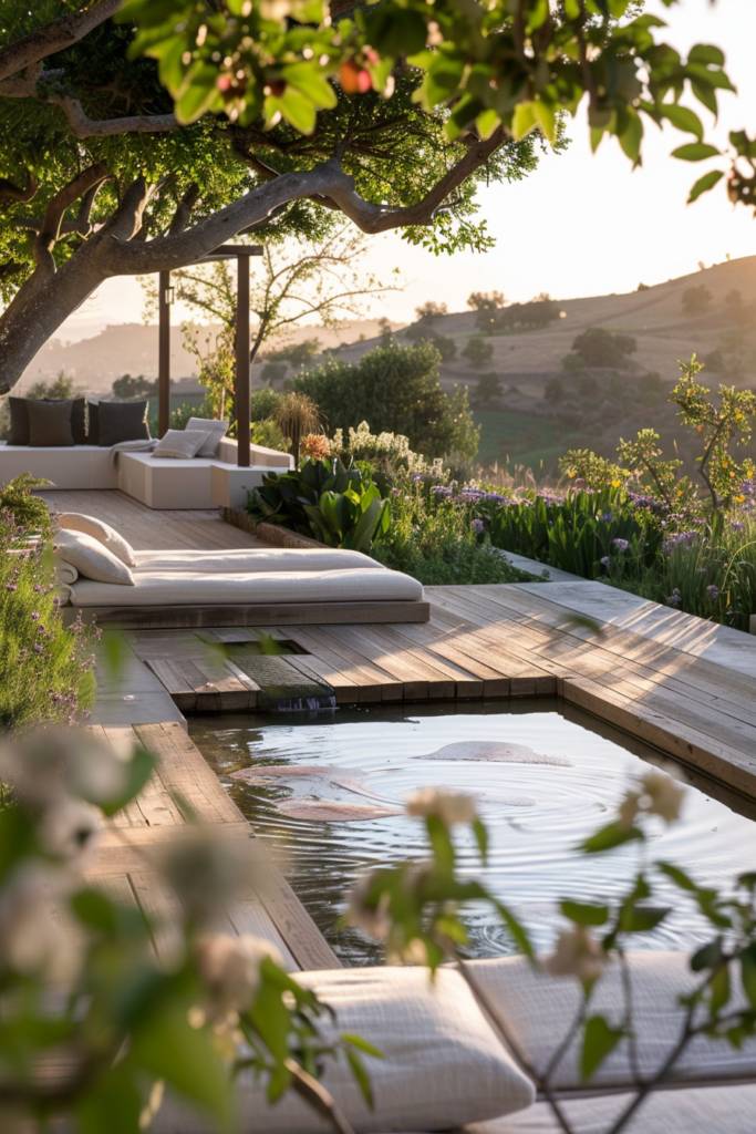 A small water feature, like a bamboo fountain, can enhance the soothing ambiance, providing gentle sounds that relax the mind. Strategically placed boulders and minimalist sculptures add harmony, inviting contemplation. Consider using reclaimed wood for seating, blending comfort with eco-friendliness.