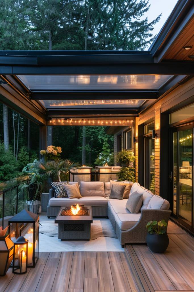 For rain protection, opt for waterproof outdoor curtains or sliding glass panels that can be easily opened or closed based on the forecast. Incorporating a green roof or living walls not only enhances aesthetics but also provides natural insulation, promoting sustainability.