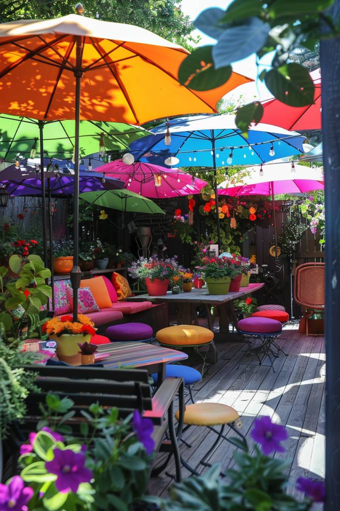 After establishing a serene minimalist retreat, it’s time to add a splash of personality with a colorful patio umbrella setup. Choosing vibrant colors not only enhances your outdoor space but also creates a welcoming atmosphere. Opt for umbrellas made from sustainable materials, like recycled fabrics or UV-resistant polyester, ensuring durability while being eco-friendly.